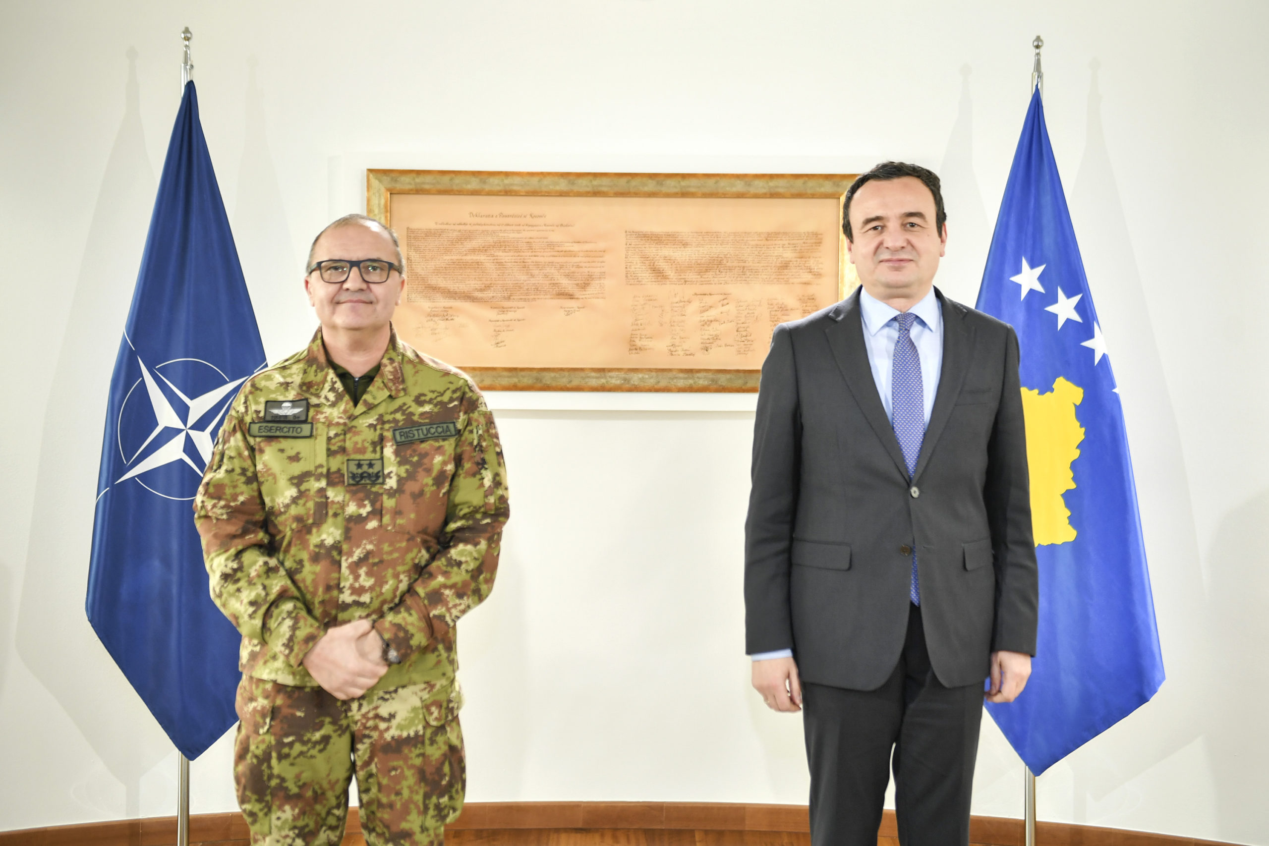 Kryeministri i Republikës së Kosovës, Albin Kurti, së bashku me zëvendëskryeministrin për Integrim Evropian, Zhvillim dhe Dialog, Besnik Bislimi dhe Ministrin e Punëve të Brendshme, Xhelal Sveçla, priti në takimin komandantin e Forcave paqeruajtëse të NATO-s në Kosovë (KFOR), Gjeneralmajorin Angelo Michele Ristuccia.