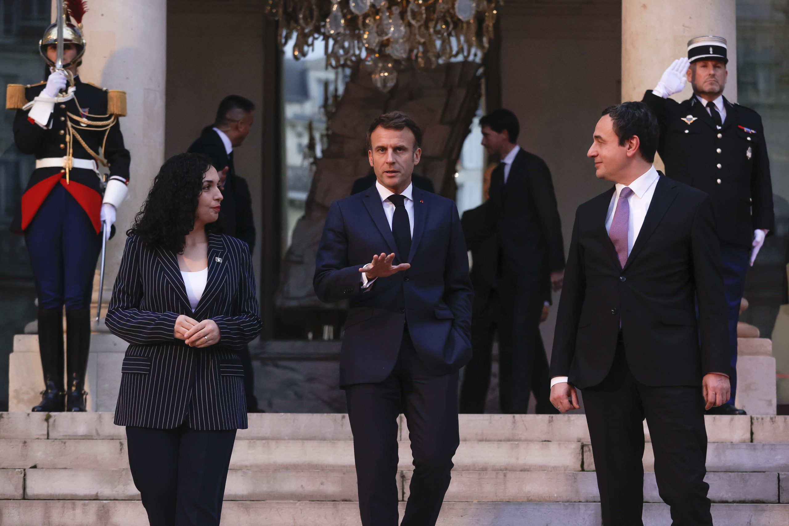 Presidentja e Republikës së Kosovës, Vjosa Osmani dhe kryeministri Albin Kurti u pritën sot në Pallatin Élysee takim nga Presidenti i Republikës franceze, Emmanuel Macron.