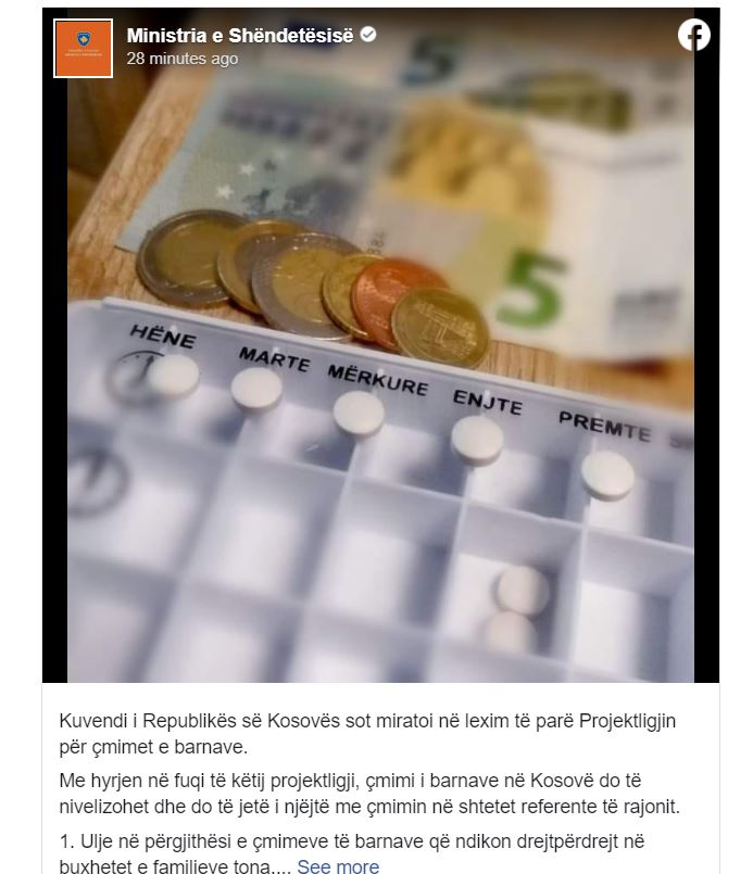 Çmimet e barnave të përballueshme dhe të unifikuara. Ndërsa, për herë të parë në vendin tonë krijohet një sistem rregullativ për çmimin e barnave, thuhet në postimin në Facebook të MSh-së.