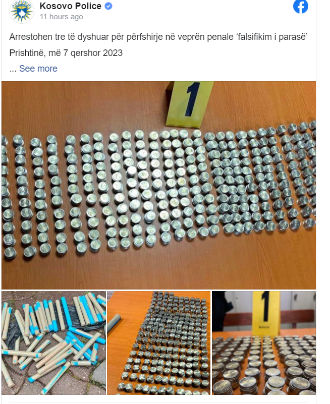 Hetuesit policorë nga Drejtoria për Hetimin e Krimeve Ekonomike dhe Korrupsionit (DHKEK), përkatësisht Sektori për Hetimin e Krimeve Ekonomike, të mbështetur edhe nga institucionet e tjera të zbatimit të ligjit dhe në koordinim me Prokurorinë Themelore në Prishtinë, për një periudhë disa mujore, kanë zhvilluar hetime ndaj disa personave nën dyshimin e përfshirjes në veprën penale ‘falsifikim i parasë’