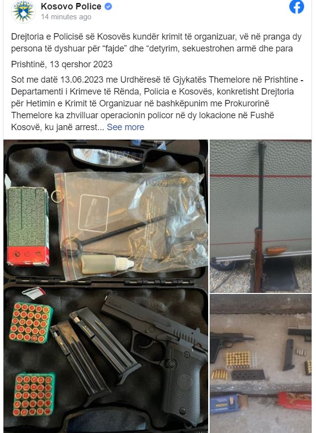 Me Urdhëresë të Gjykatës Themelore në Prishtinë – Departamenti i Krimeve të Rënda, Policia e Kosovës, konkretisht Drejtoria për Hetimin e Krimit të Organizuar në bashkëpunim me Prokurorinë Themelore ka zhvilluar operacionin policor në dy lokacione në Fushë Kosovë, ku janë arrestuar dy persona të dyshuar lidhur me dyshimin për kryerjen e veprave penale “Fajde” edhe “Detyrim”.