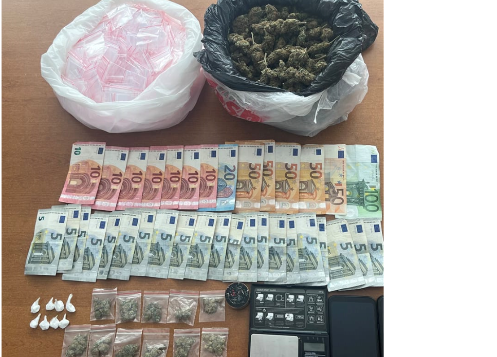 Policia ka parandaluar ikjen e tij dhe gjatë kontrollit fillestar në gjepat e pantallonave i ka gjetur: (11) qese me narkotik të dyshuar të llojit Mariuhanë me peshë 10 gramë, një peshore digjitale si dhe 545 euro. Ndërsa, gjatë kontrollit të çantës së kraharorit i janë gjetur: një qese me narkotik të llojit Mariuhanë me peshë 535 gramë, 8 qese me narkotik të llojit Kokainë me peshë 3 gramë, një grinder (mulli) për bluarje të narkotikeve, si dhe një qese e madhe me rreth 1000 paketime të vogla të cilat shërbejnë për ndarje të narkotikëve.