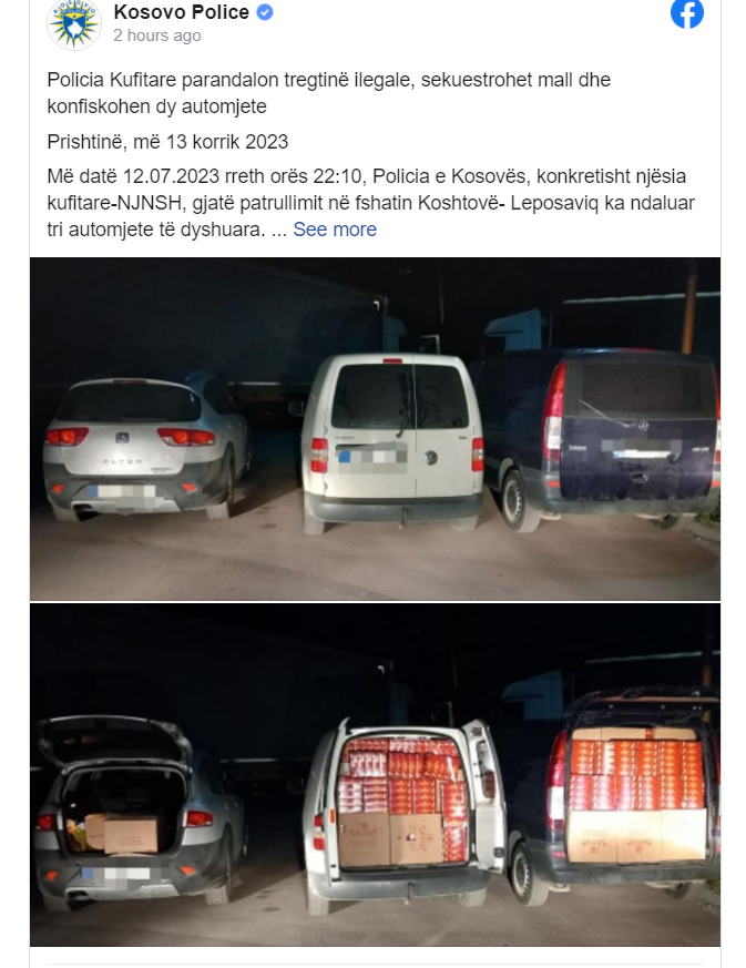 Gjatë realizimit të kontrollit të këtyre automjeteve është konstatuar se kanë të ngarkuar paketa me filtër të cigareve. Sipas deklaratave të personave të dyshuar malli është sjell nga një person prej Novi Pazarit-Serbi në fshatin Soqanicë-Leposaviq, ku me pas ata e kanë ngarkuar mallin nëpër automjete për destinim në Mitrovicë.